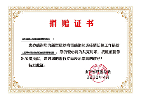 山東誠信始終秉承"源于社會 回報社會"的企業社會責任理念,積極參與公益事業,將企業公民的理念延伸至扶貧、教育、環境保護、公共衛生等眾多領域,贏得了各界的肯定。